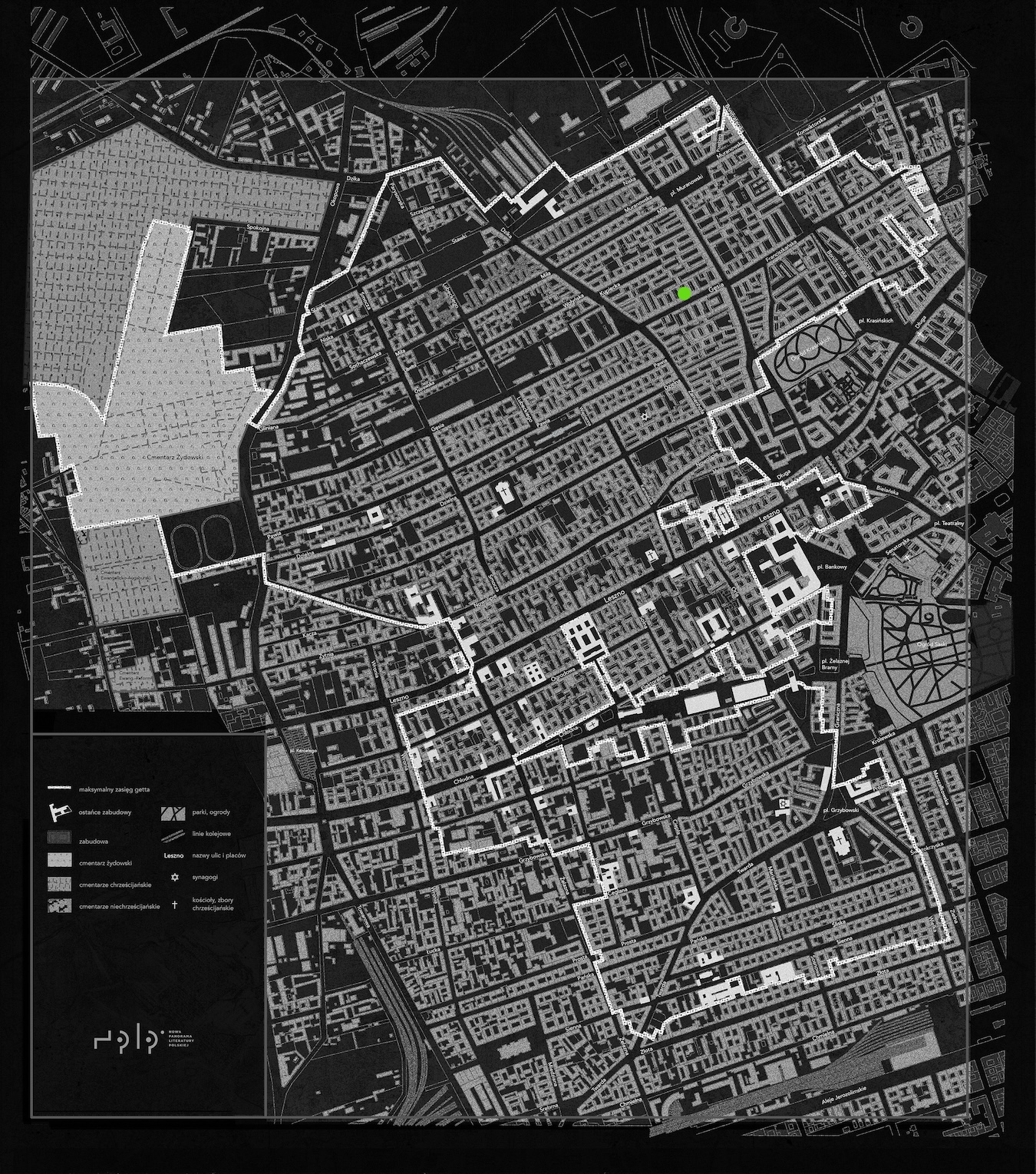 Był to sierociniec z ulicy Gęsiej. Z odcinka Gęsiej blisko Nalewek. Gdyśmy schodzili ze schodów — z trzeciego piętra na drugie, a potem z drugiego na pierwsze — otarła się o mnie kobieta w zielonym palcie.